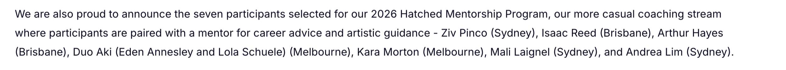 We are delighted to be spending this year working under the mentorship of artists from Topology, Queensland's leading creative and collaborative music groups.